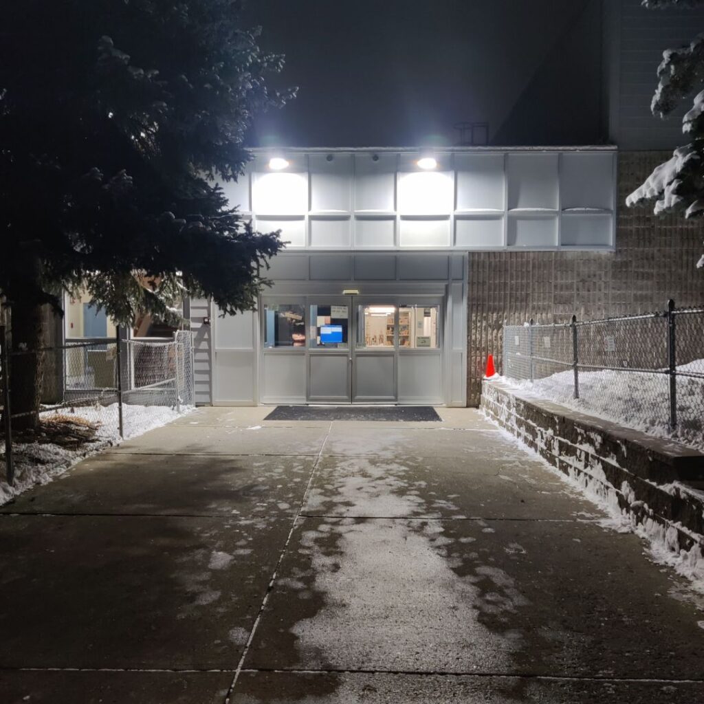 However, no amount of passion could save the failing rink lighting system. The lights took several minutes to “warm up,” wasting both electricity and posing a safety risk to skaters. Once warm, the old multi-directional lights caused a new problem: they shone into neighbouring houses, causing uncomfortable glare. Additionally, the outdated system wasted electricity, and inflated operating costs for the community association.